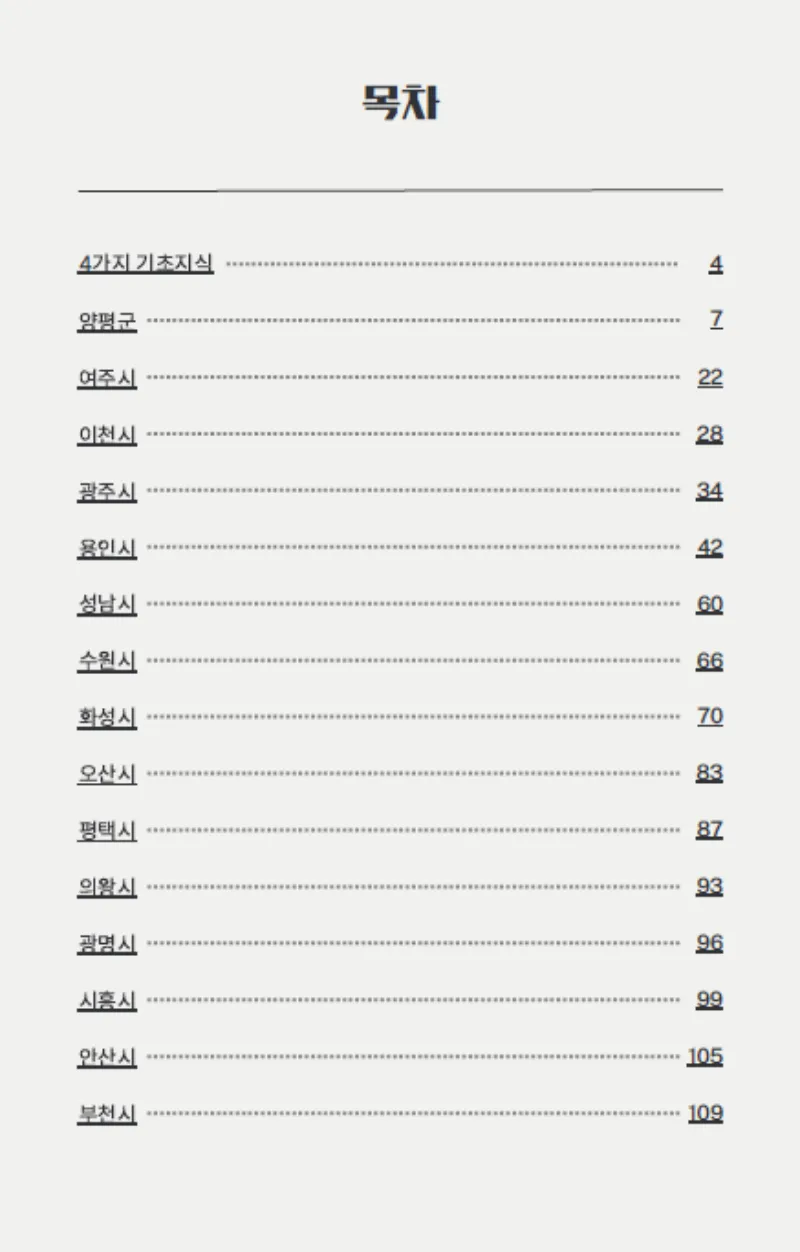 당신이 궁금해하는 모든 전원마을의 위치와 특징, 장단점, 그리고 제 노하우가 담긴 총평까지 한꺼번에 담겨 있습니다.